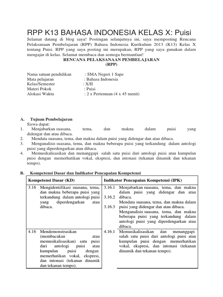Bahasa Indonesia Judul Materi Pelajaran Sma Kelas 10 Kurikulum 2013 Kumpulan Artikel Pendidikan