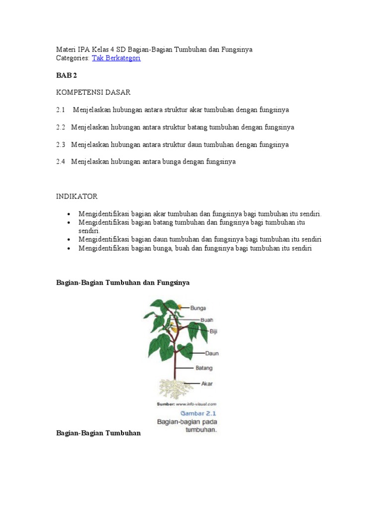Bagian Tumbuhan Serta Fungsinya Materi Ipa Kelas 4 Sd Materi Sd Kelas 4