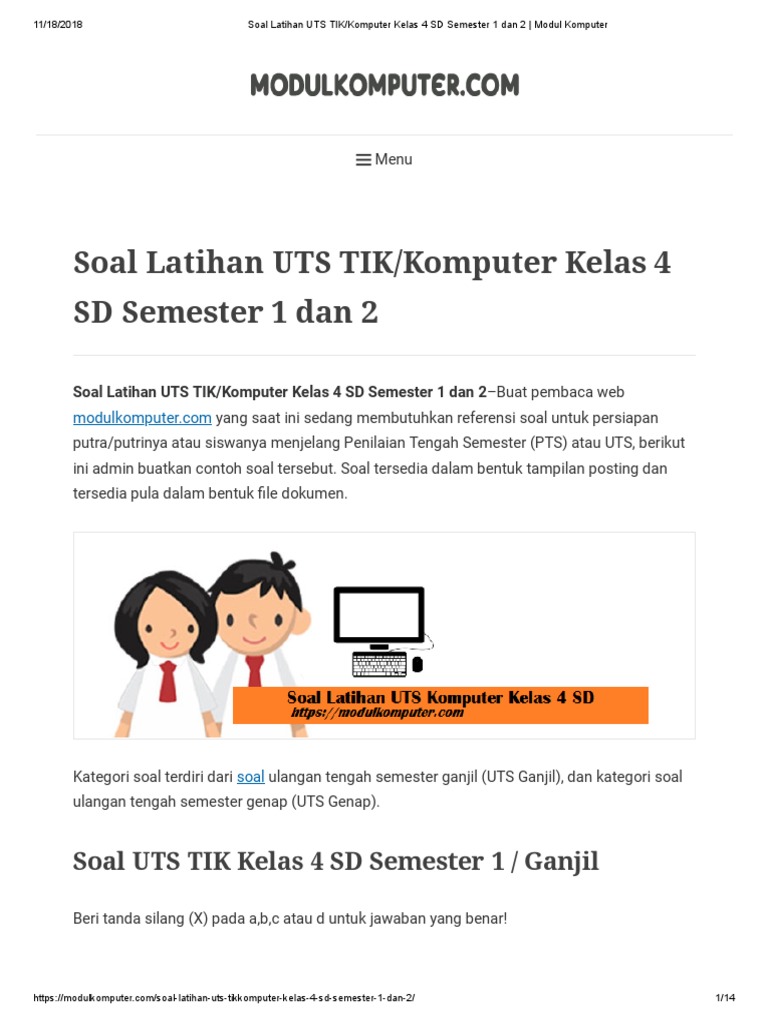 Modul Pembelajaran Tik Untuk Siswa Kelas 1 Sd Mi Pdf Free Download