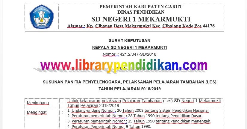 Sk Les Kelas Vi 6 Sd Lampiran Susunanpanitia Jadwal Daftar Hadir Tahun Pelajaran 2018 2019 Library Pendidikan