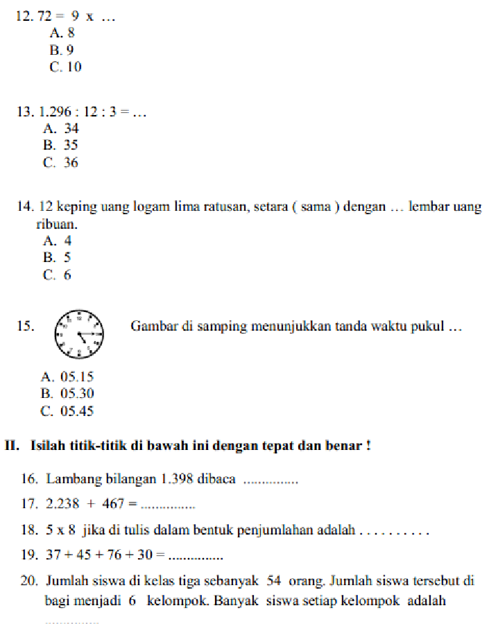 Soal Penilaian Tengah Semester 1 Matematika Kelas 5 K 13 Sekolahdasar Net