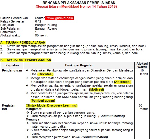 Rpp Matematika Kelas 6 Sd Semester 1 Kurikulum 2013 Revisi Tahun 2020 Sch Paperplane