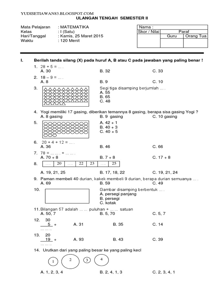 Soal Matematika Kelas 1 Sd Bab 3 Pengukuran Waktu Dan Panjang Www Bimbelbrilian Com Proprofs Quiz