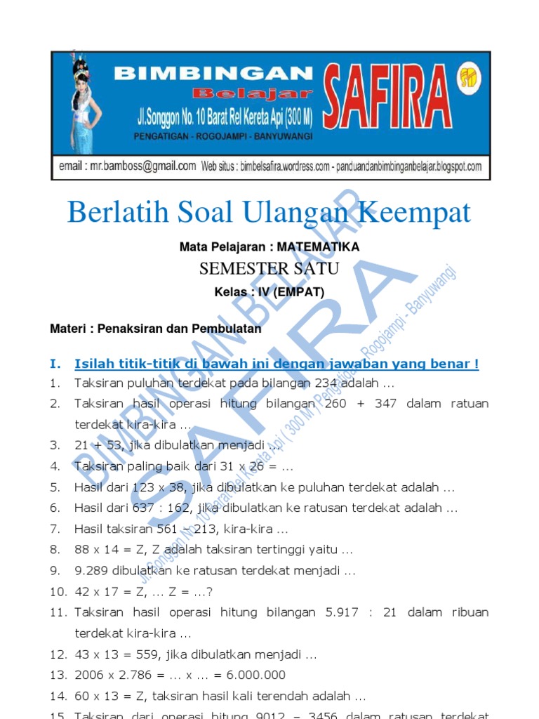 Soal Matematika Kelas 4 Sd Pembulatan Hasil Pengukuran Ke Satuan Puluhan Atau Ratusan Terdekat Contoh Rpp Sd Dan Soal Sd