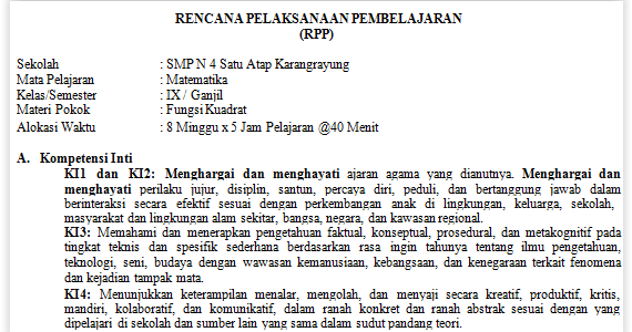 Instink Mathematic Rpp Kelas 9 Fungsi Kuadrat Kk 2013 Revisi 2019