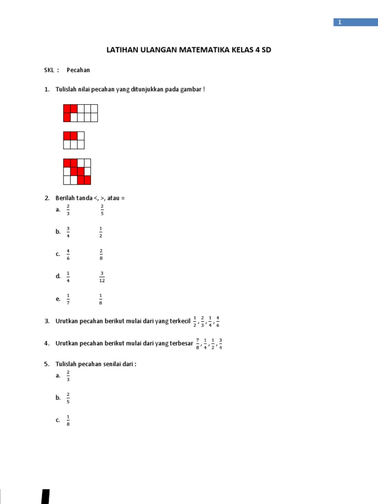 1 Soal Latihan Matematika Kelas Iv Sd Materi Pecahan Dan Taksiran Docx