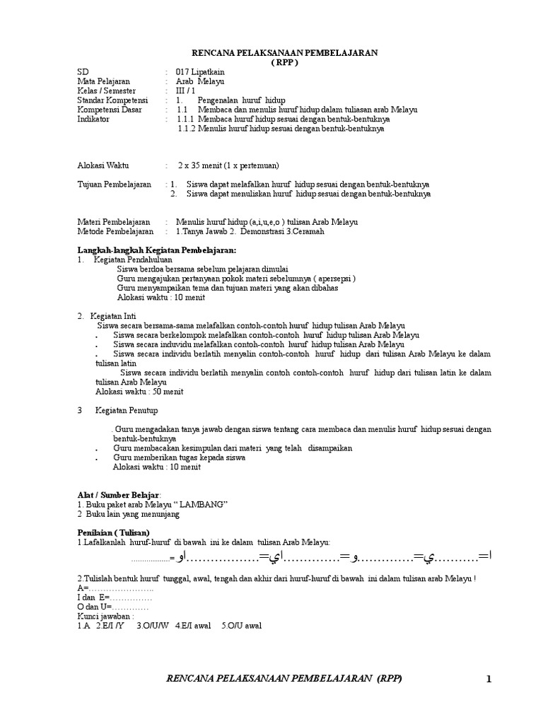 Arab Melayu بر ا Materi Pokok 6 Mengalihkan Teks Aksara Arab Melayu Ke Dalam Aksara Latin Pdf Document