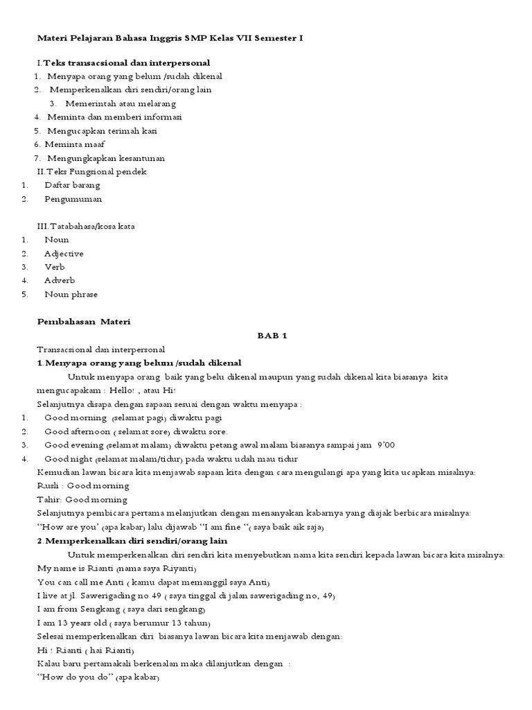 Materi Pelajaran Bahasa Inggris Smp Kelas 9 Semester 1 Dan 2 Jagoan Bahasa Inggris