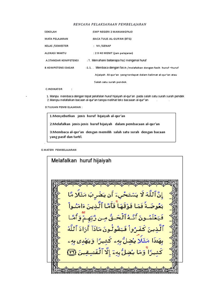 Upaya Peningkatan Penguasaan Materi Pelajaran Baca Tulis Al Qur An Btq Melalui Metode Drill Pada Siswa Kelas Iii Sd Negeri Panca Arga I Mertoyudan Kab Magelang Test Repository