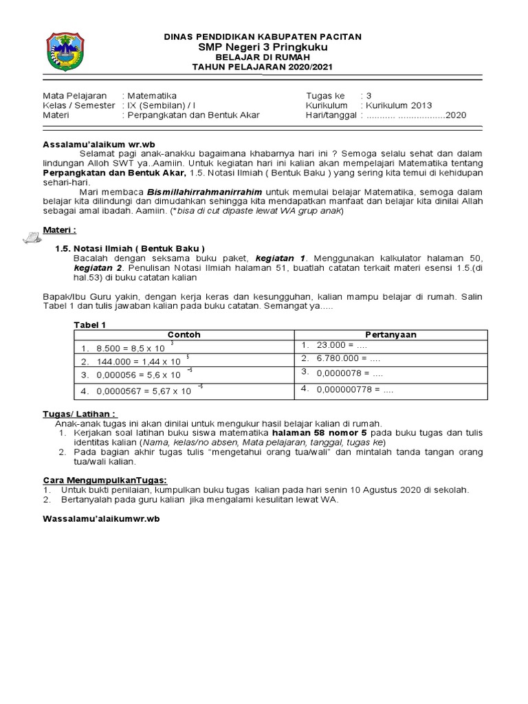 Kisi Kisi Pas Matematika Smp Kelas 9 Semester Ganjil Kurikulum 2013 Tahun Pelajaran 2019 2020 Didno76 Com