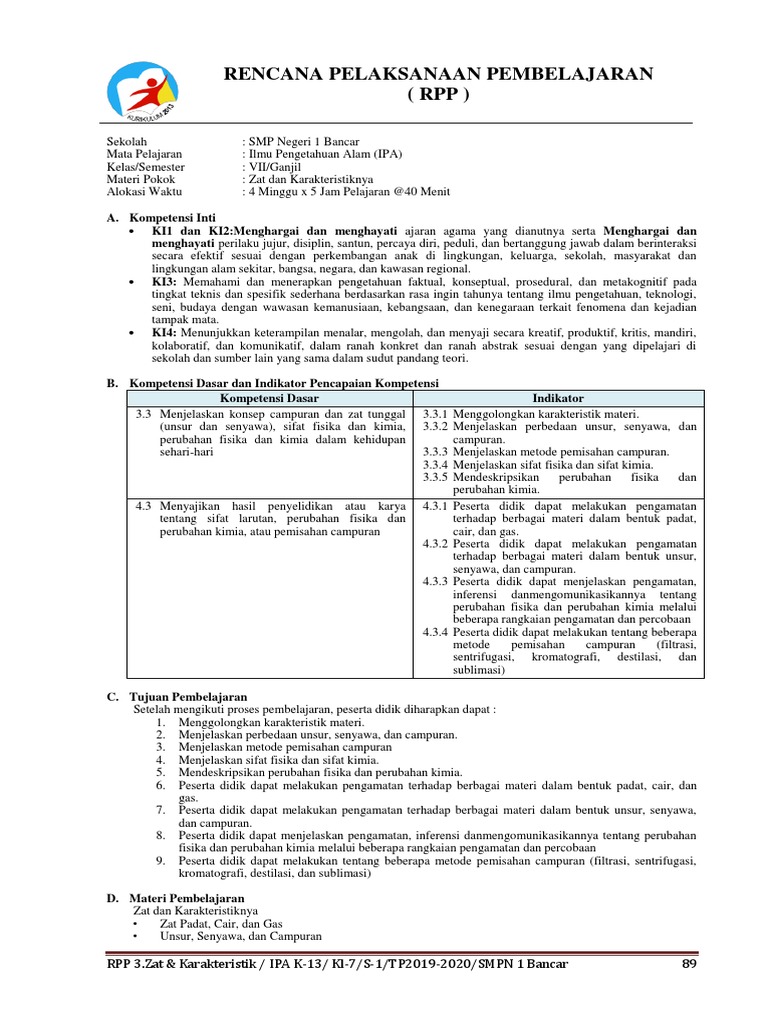 Silabus Ipa Smp Kelas 7 Semester Ganjil Kurikulum 2013 Tahun Pelajaran 2020 2021 Didno76 Com