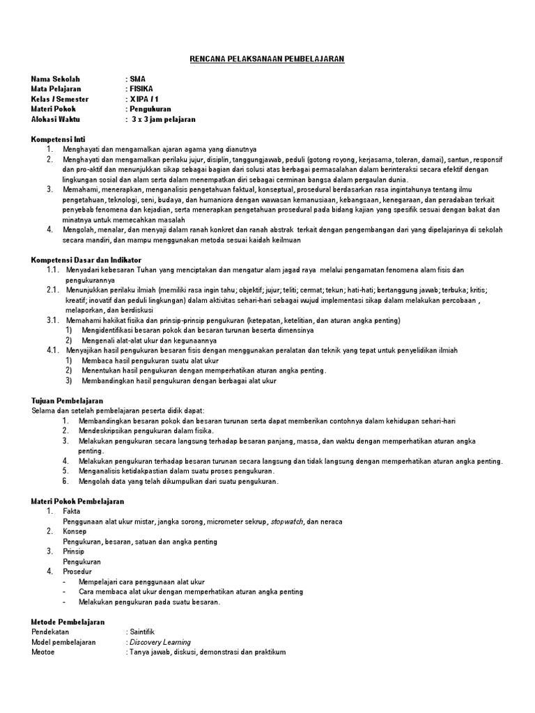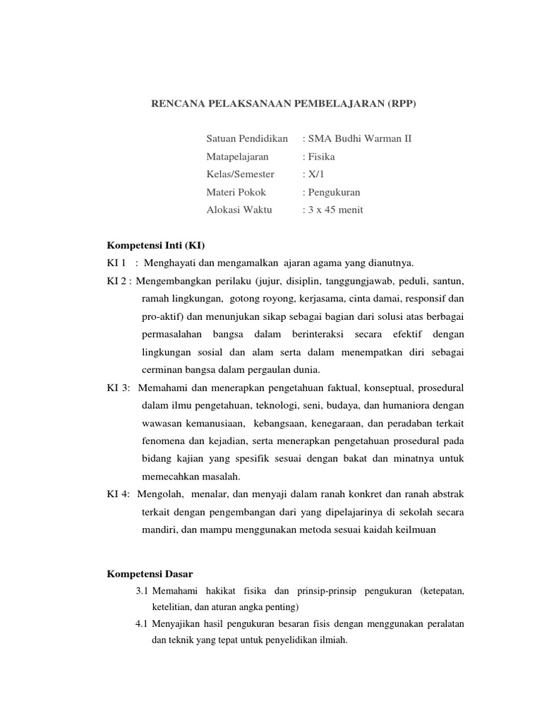 Rpp Fisika Sma Kelas X Semester 1