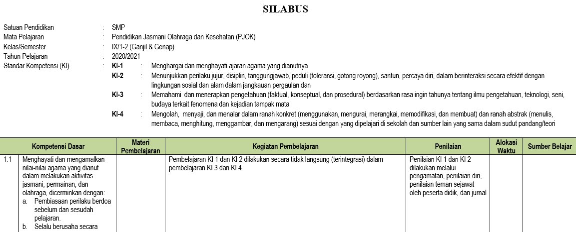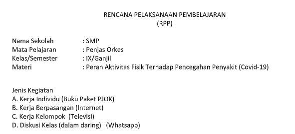 Rpp Daring Penjas Kelas 9 Semester Ganjil Kurikulum 2013 Tahun Pelajaran 2020 2021 Didno76 Com