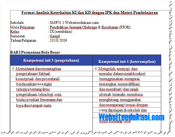 Perangkat Pembelajaran Pjok Kelas 9 K 13 Revisi 2018 Kurikulum Pendidikan Dasar Model Pembelajaran