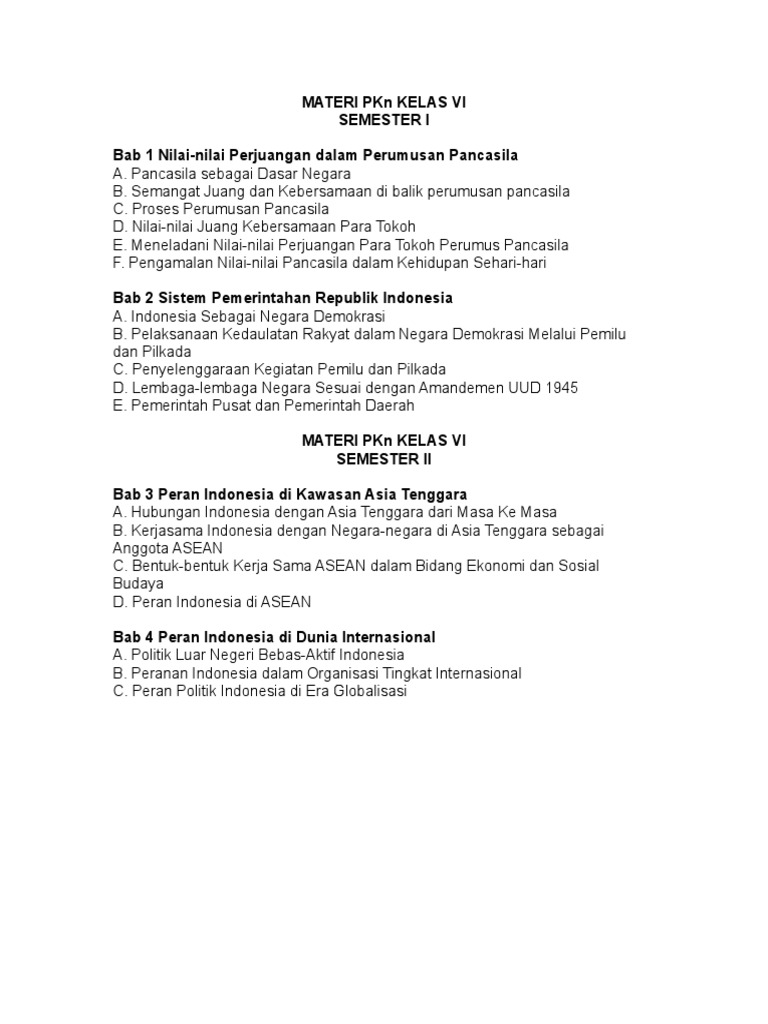 Rangkuman Materi Pkn Kelas 6 Sd Mi Semester 1 Dan 2 Persiapan Ujian Sekolah Administrasipendidik