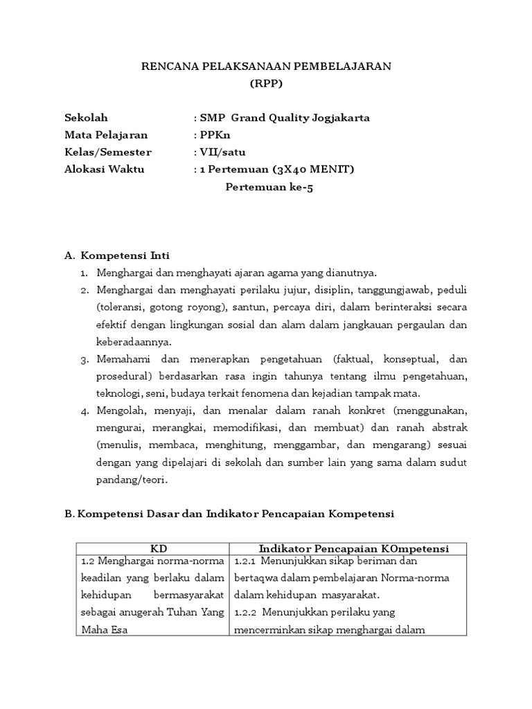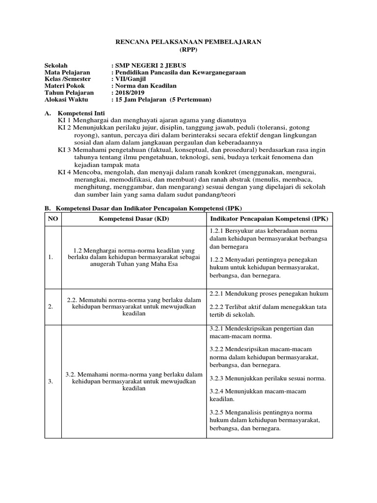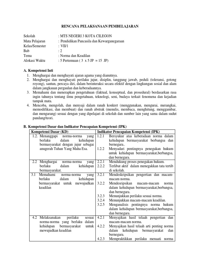 Rpp Ppkn Kelas 7 Semester I Bab 2 Norma Dan Keadilan Kurikulum 2013 Restu Guruku Ppkn Pramuka