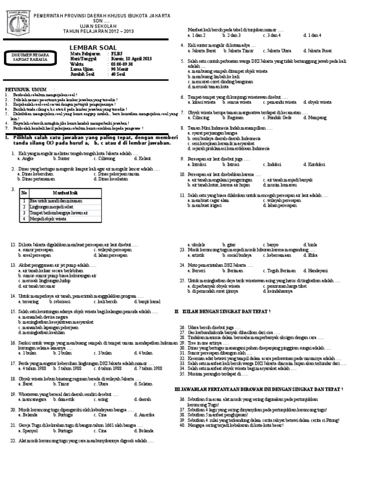Soal Plbj Kelas 3 Sd Tempat Rekreasi Di Jakarta Sebuah Tempat