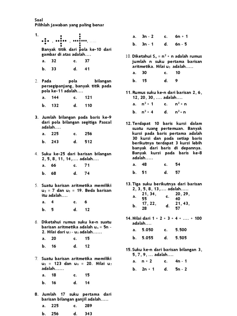 Kumpulan Contoh Soal Contoh Soal Barisan Dan Deret Aritmatika Smp