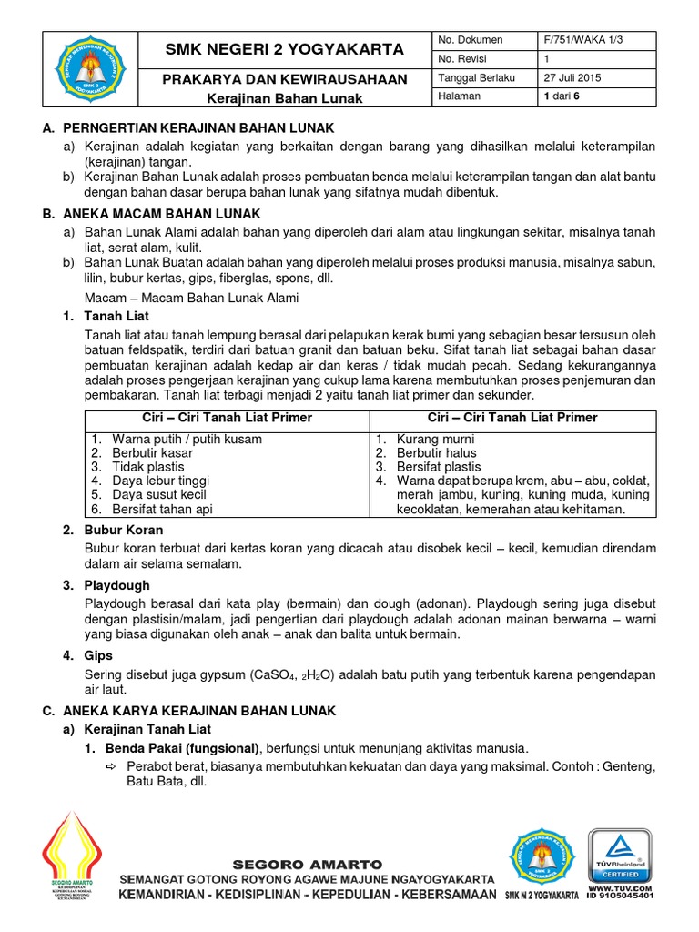 Materi Prakarya Kelas 8 Bab 1 Kerajian Bahan Lunak Dunia Pendidikan