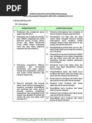 Doc Kompetensi Inti Dan Kompetensi Dasar Prakarya Sekolah Menengah Pertama Smp Madrasah Tsanawiyah Mts Kang Dayat Academia Edu