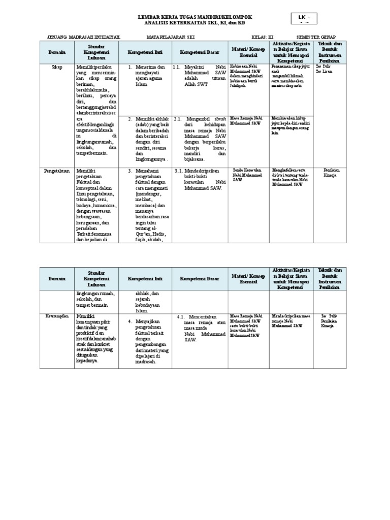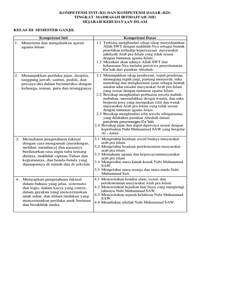 Materi Pelajaran Ski Kelas 3 Mi Sd Semester 1 2 Kurikulum 2013