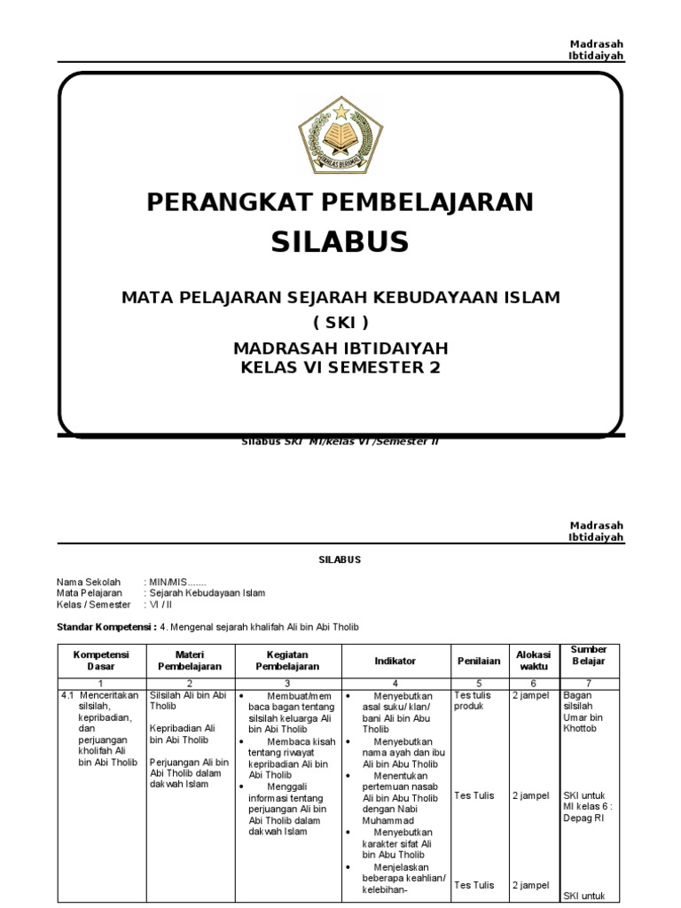 Rpp 1 Lembar Sejarah Kebudayaan Islam Kelas 1 6 Jenjang Sd Mi 2020 2021 Sinau Thewe Com
