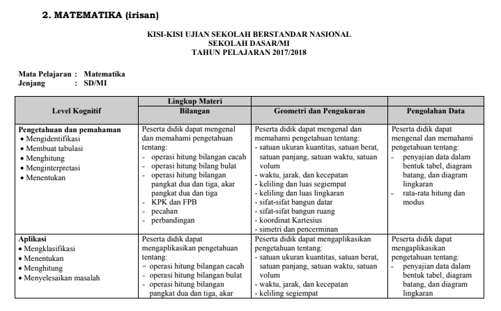 Download Kisi Kisi Soal Usbn Sd Mi Tahun 2019 Bahasa Indonesia Matematika Dan Ipa Irisan Ktsp 2006 Dan Kurikulum 2013 Website Pendidikan