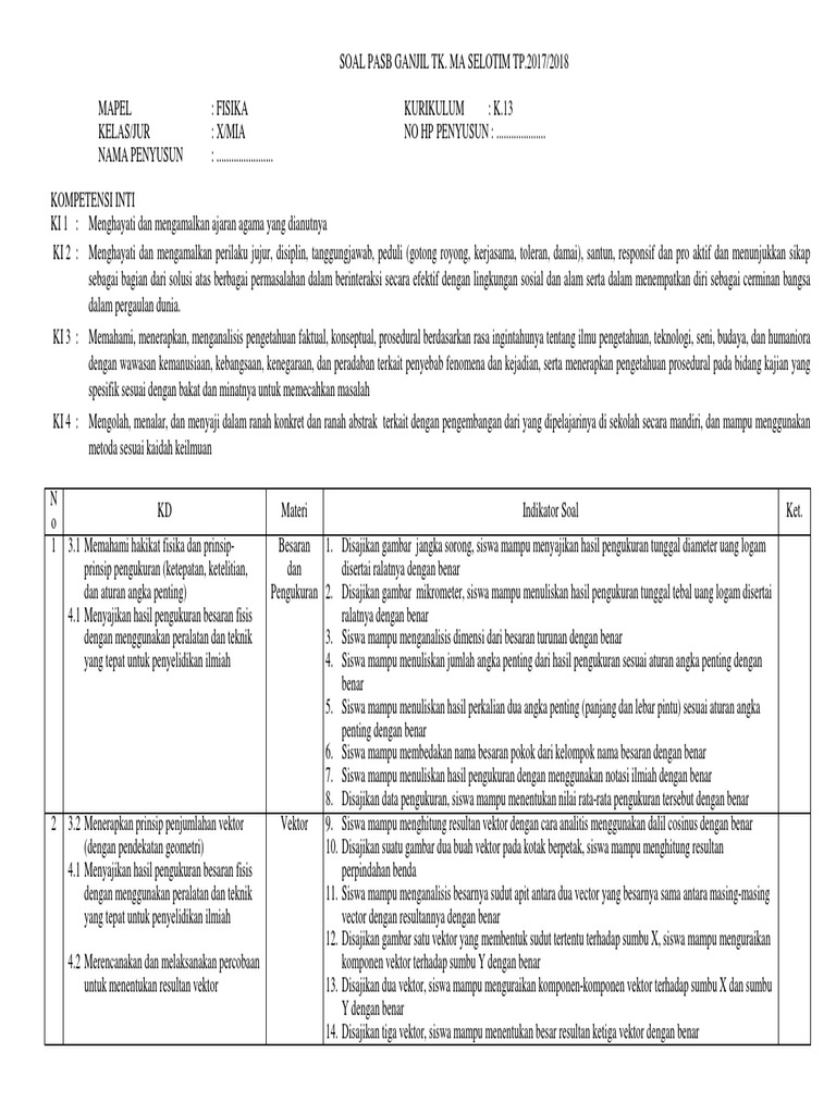 Doc Materi Fisika Sma Kurikulum 2013 Kelas X Smt No Materi Pokok Ganjil Pengukuran Ketelitian Akurasi Dan Ketepatan Presisi Kesalahan Pengukuran Penggunaan Angka Penting Harlan Ws Academia Edu