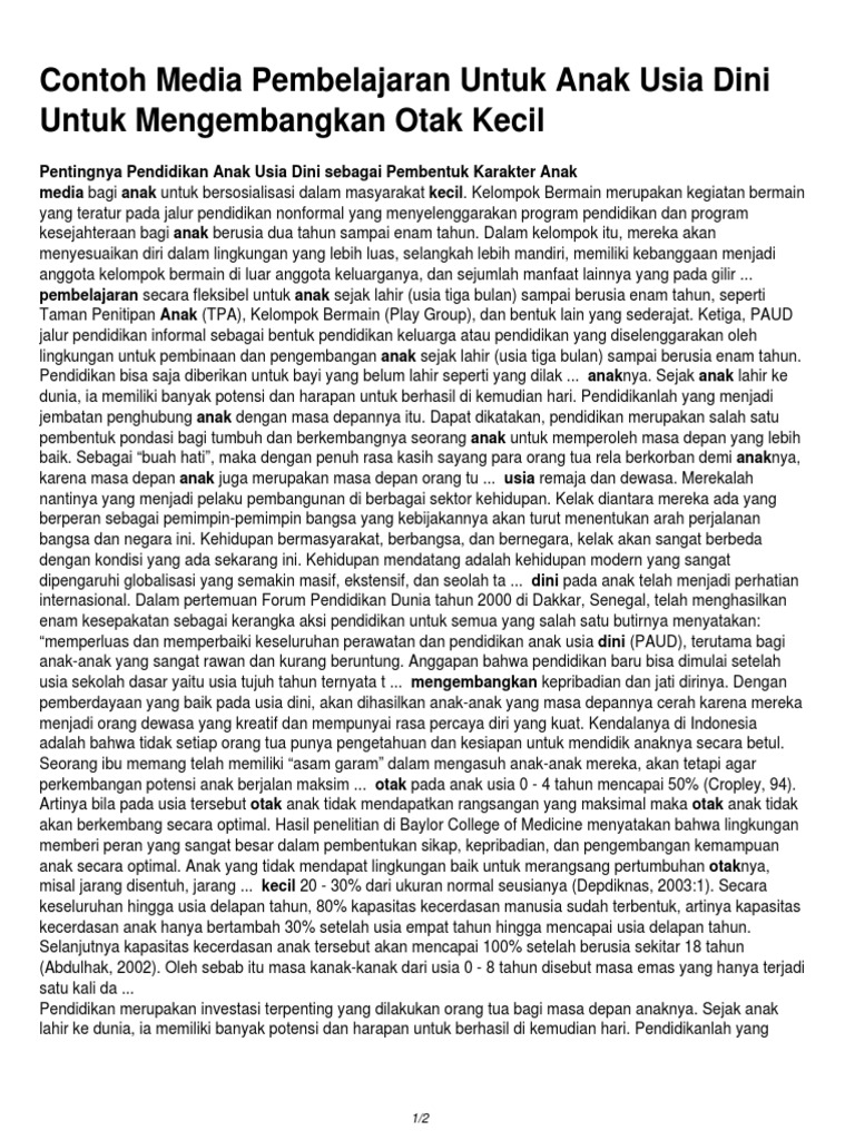 Contoh Media Pembelajaran Untuk Anak Usia Dini Untuk Mengembangkan Otak Kecil Pdf