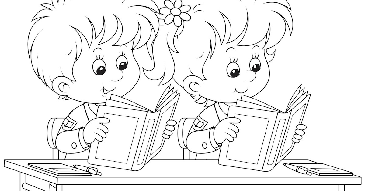 Satu Garis Gambar Anak Muda Bahagia Sekolah Dasar Gadis Belajar Stok Vektor C Simpleline 387701346