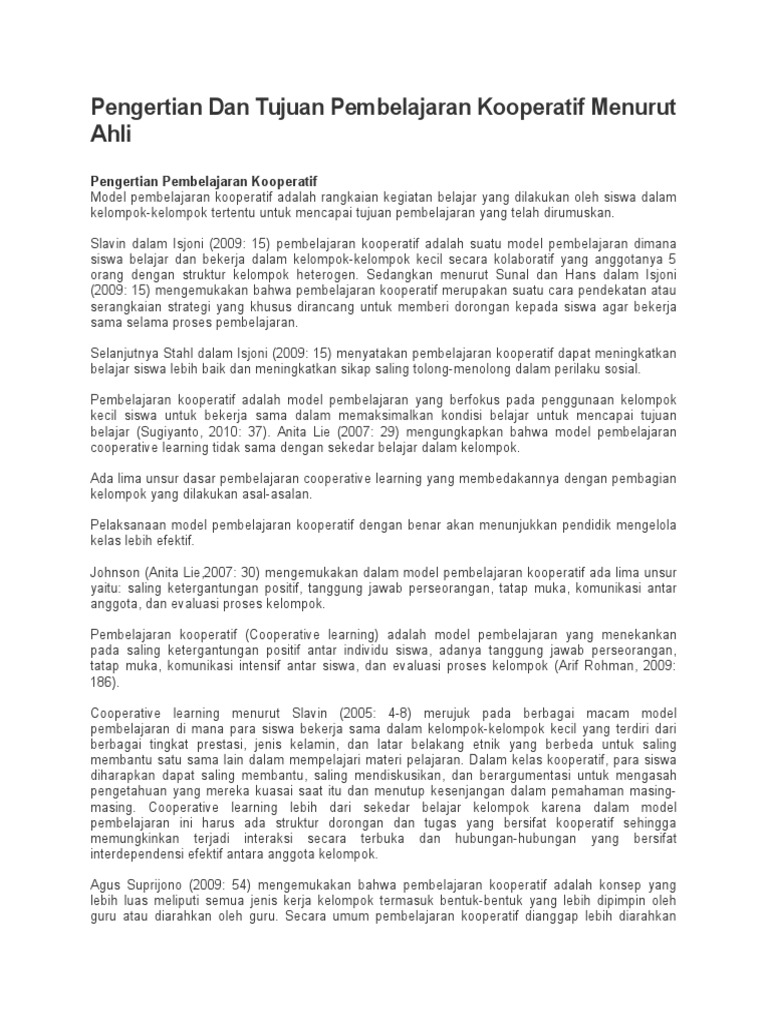 Pengertian Dan Tujuan Pembelajaran Kooperatif Menurut Ahli