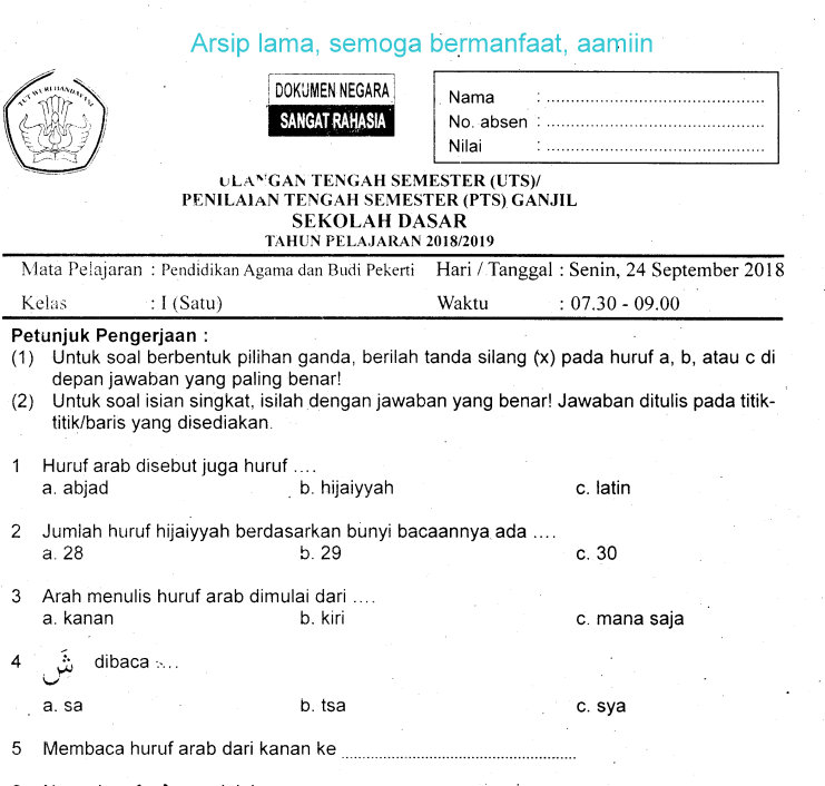Soal Uts Pendidikan Agama Islam Sd Kelas 1 Semester 2 Terbaru 2020 Idn Paperplane