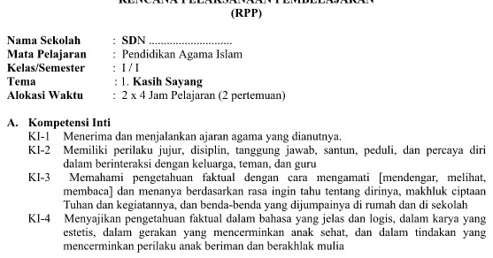 Rpp 1 Lembar Pai Sd Kelas 1 2 3 4 5 6 Semester 1 Dan 2 K13 Revisi Terbaru Tekno Banget