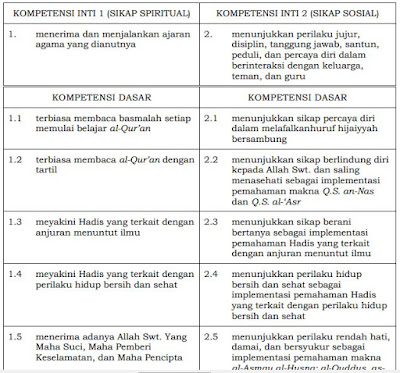 Kompetensi Inti Dan Kompetensi Dasar Ki Kd Pendidikan Agama Islam Dan Budi Pekerti Sd Mi Kelas 1 6 Kurikulum 2013 Guru Jumi