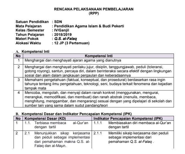 Download Rpp Pai Dan Bp 1 Lembar Kelas 1 2 3 4 5 Dan 6 Semester 1 Kurikulum 2013 Ruang Pendidikan