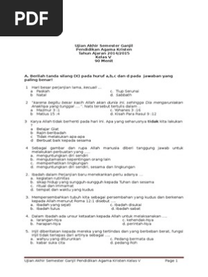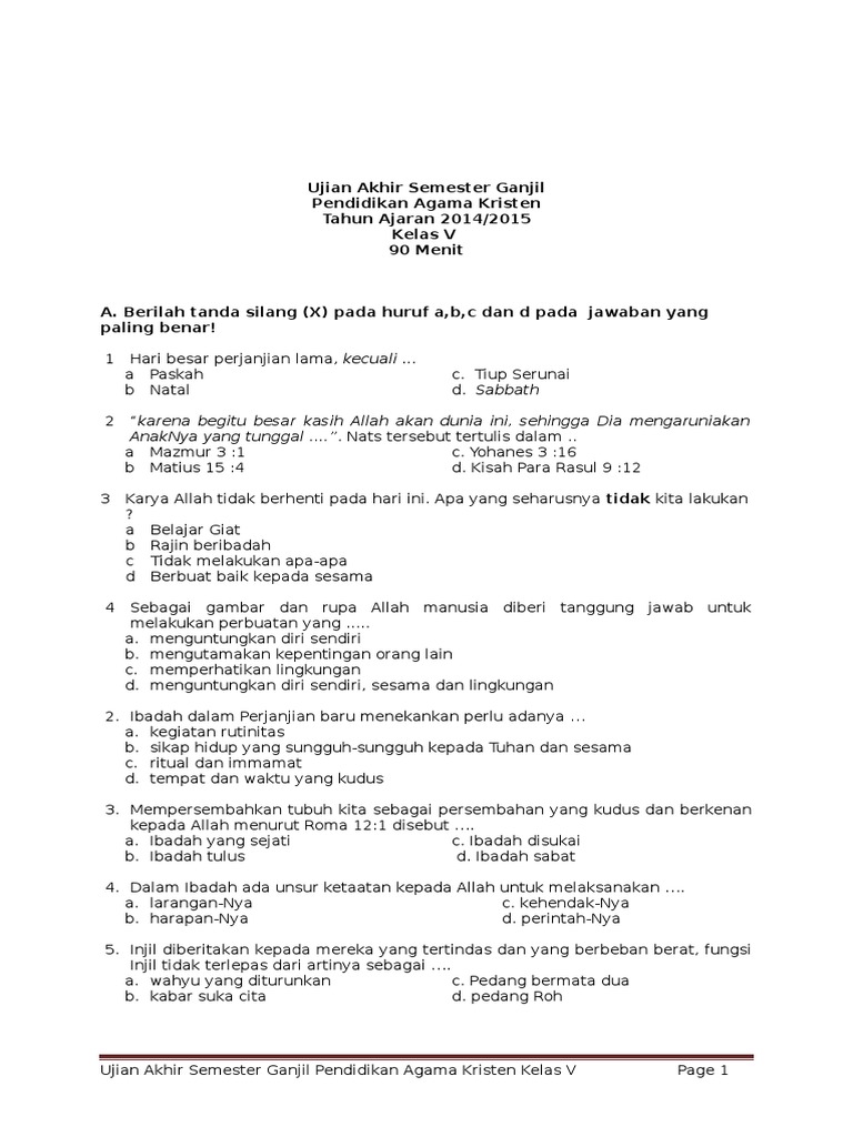 Soal Agama Kristen Kelas 1 2 3 4 5 Sd Semester 2 Docx Kelas I Pilihan Ganda 1 Manusia Adalah Ciptaan A Presiden B Tuhan C Hewan 2 Untuk Menerangi Bumi Course Hero