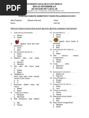 Soal Uts Bahasa Indonesia Kelas 2 Semester 2 Genap Terbaru Lengkap Kunci Jawaban Anak Pandai