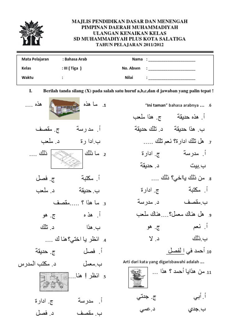 Soal Bahasa Arab Kelas 3 Mi Semester 1 Tahun 2018 Kunci Ujian