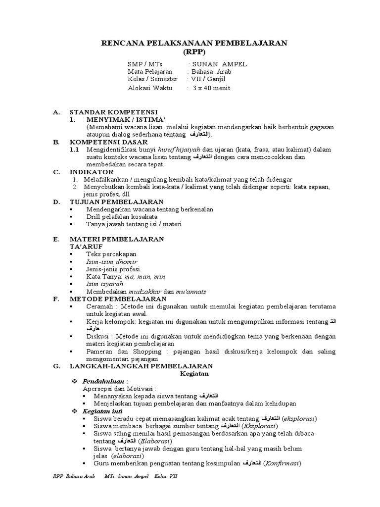 Download Perangkat Pembelajaran Bahasa Arab Kelas 7 Mts Tahun 2018 2019 Kami Madrasah