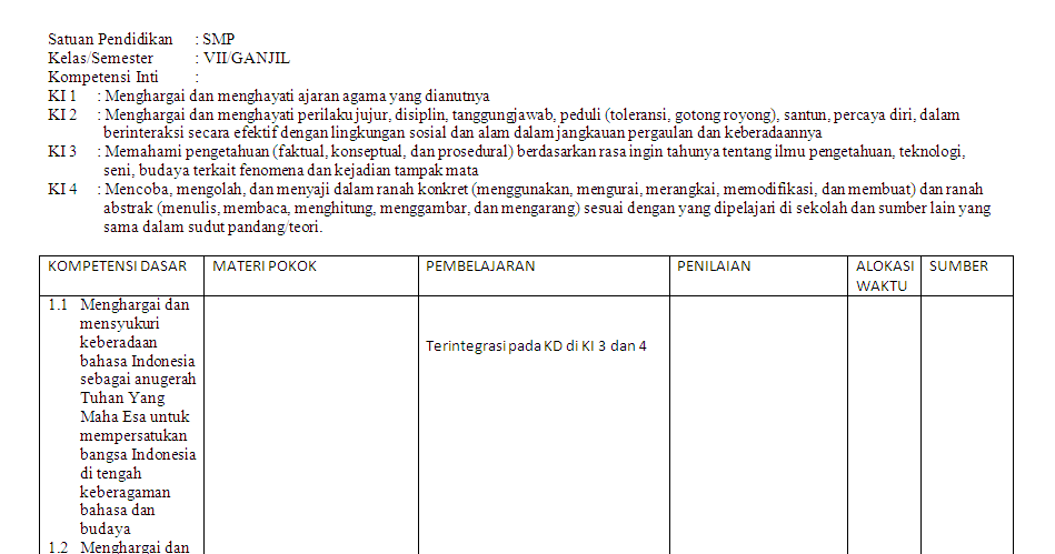 Rpp Bahasa Indonesia Kelas 7 Kurikulum 2013 Revisi 2018 Materi Pelajaran 1