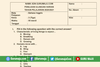 Download Soal Dan Kunci Jawaban Pts Uts Bahasa Inggris Kelas 3 Semester 2 Sd Mi Sdn Sobang 2
