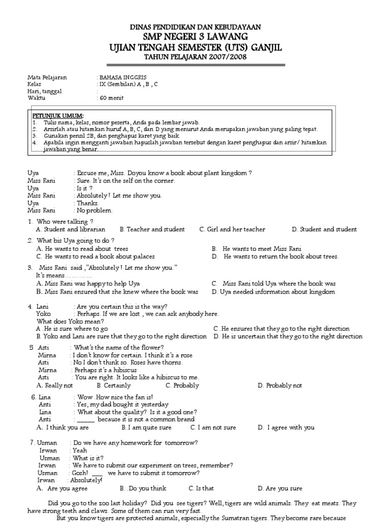 Soal Pas Uas Bahasa Inggris Kelas 9 Tahun 2018 2019 Bahasa Inggris Smp Mts