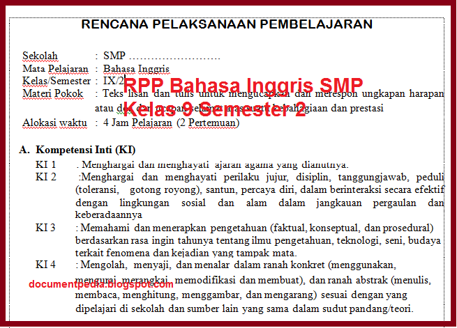 Rpp Satu Lembar Bahasa Inggris Smp Mts K13 Semester 2 Revisi 2020 Info Pendidikan Terbaru
