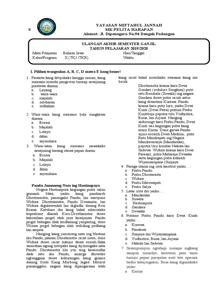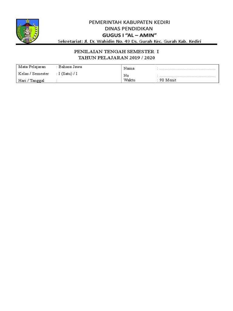 Doawnload Soal Pts Mulok Bahasa Jawa Kelas 1 6 Sd Mi Semester 1 Edisi 2020 Mayfile