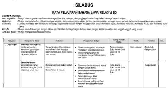Ki Dan Kd Bahasa Daerah Jawa Sd Kurikulum 2013 Sekolahdasar Net
