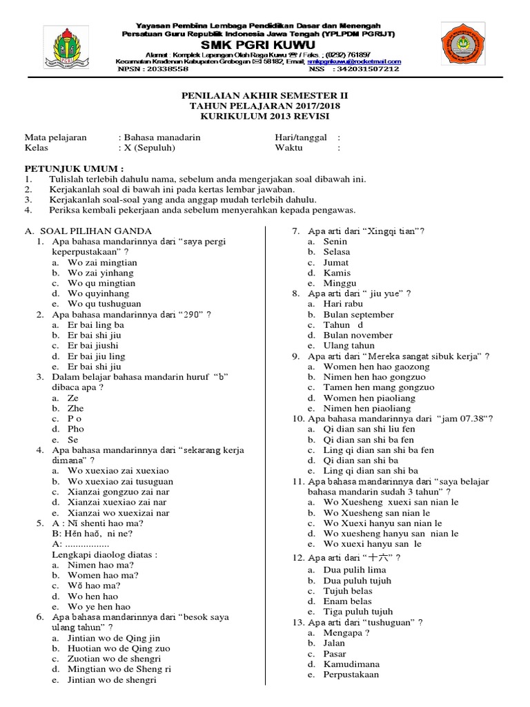 Laoshiteguhlc Modul Mata Pelajaran Bahasa Mandarin Kolese Loyola By Laoshi Teguh