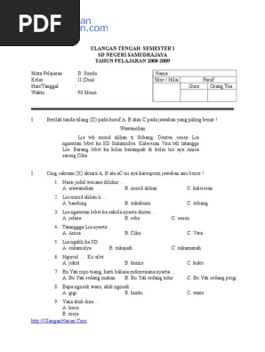 Download Soal Uas Bahasa Dan Sastra Sunda Kelas 2 Sd Semester Ganjil Lengkap Kunci Jawaban