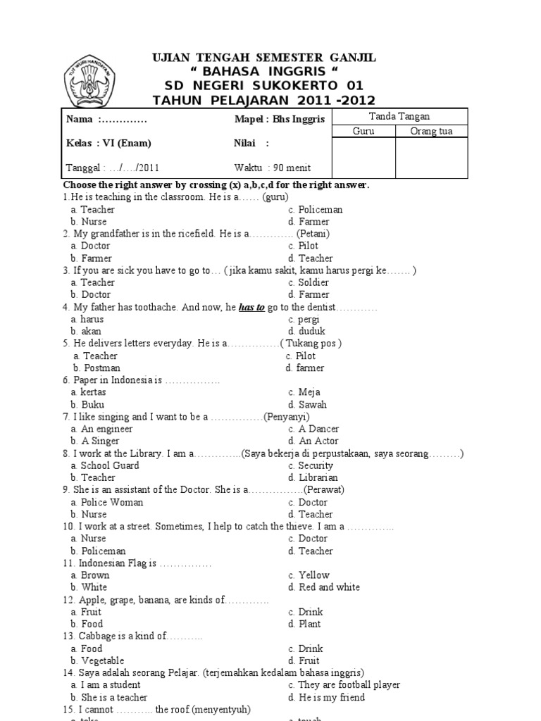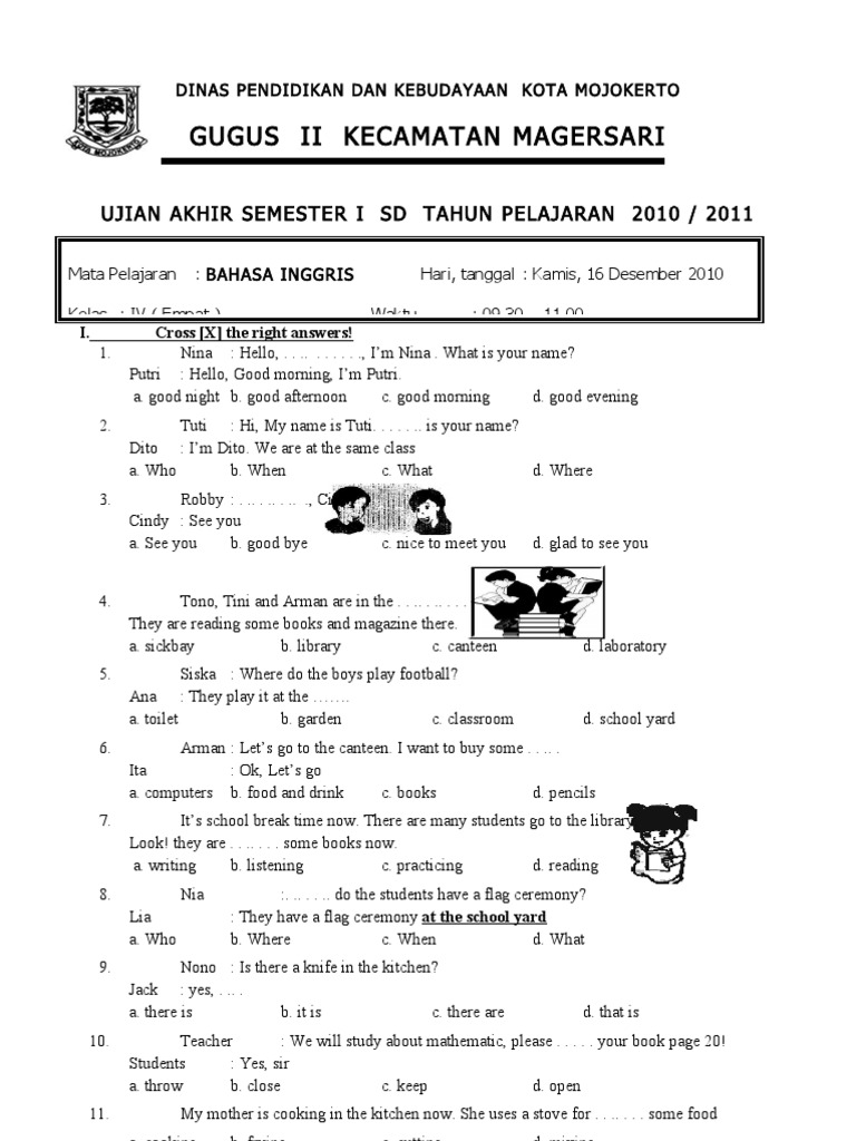 Contoh Soal Uas Bahasa Inggris Sd Kelas 3 Semester 1 Lengkap Dengan Kunci Jawaban Belajar Bahasa Inggris Online Gratis