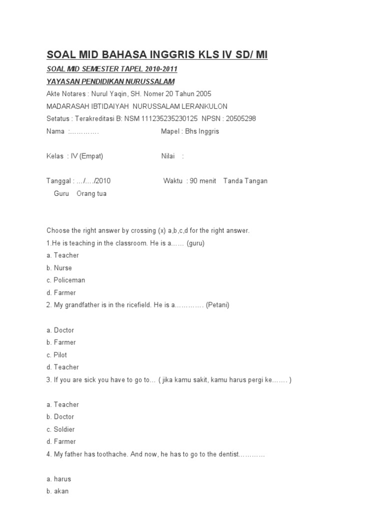 100 Soal Latihan Ukk Bahasa Inggris Untuk Sd Kelas 4 Belajar Bahasa Inggris Online Gratis