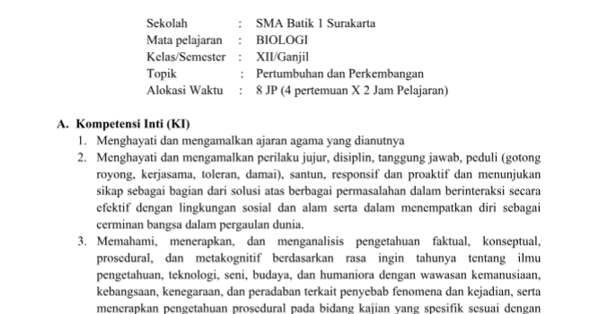 Rpp Biologi 1 Lembar Kelas 10 11 12 Semester 1 Dan 2 Revisi 2020 Info Pendidikan Terbaru